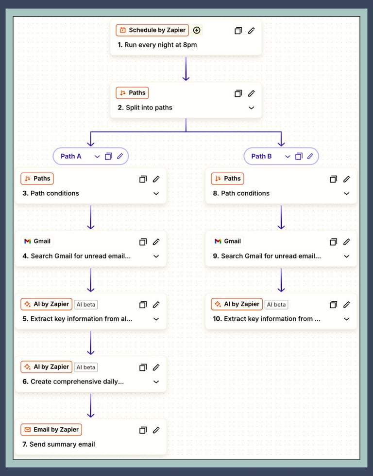 Insert an automation and a lending hand from AI, and now I get a summary of the emails containing the important information found within each of them every night at 8:00pm. This saves me time and keeps me well-informed.